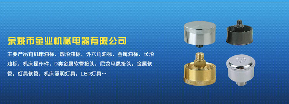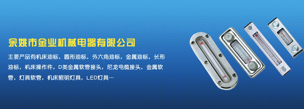 余姚市金業(yè)機(jī)械電器有限公司主要產(chǎn)品有機(jī)床油杯,圓形油標(biāo),外六角油標(biāo),金屬油標(biāo),長(zhǎng)形油標(biāo),機(jī)床操作件,D類金屬軟管接頭,尼龍電纜接頭,金屬軟管,燈具軟管,機(jī)床照明燈具,LED燈具,DGT型線路軟管防護(hù)套,TL型鋼制電纜手軌,電纜尼龍拖鏈,可調(diào)塑鋼冷卻管等產(chǎn)品,規(guī)格齊全,全部自制。望國(guó)內(nèi)外客戶前來(lái)考察:共同發(fā)展…